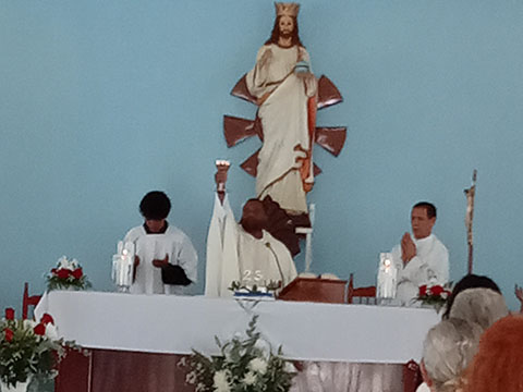 Celebración de 25 años de vida religiosa de Sor Verónica Medina en Jima de Abajo su pueblo natal, el celebrante fue el padre Osvaldo (Jesuitas).