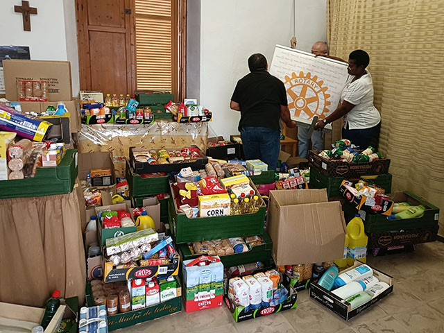 La fundación Rotary ha aportado una gran cantidad de alimentos que las hermanas de Pollensa junto con los voluntarios reparten a las familias necesitadas del pueblo.