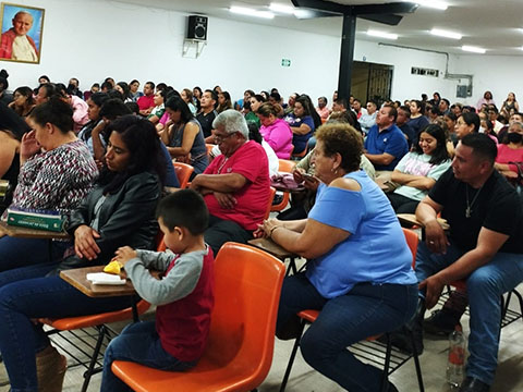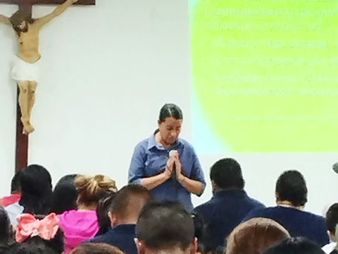 La hermana Jovita acompaña en la formación a papás y padrinos de niños que recibirán sacramentos de primera comunión y confirmación. Esta se realiza cada 15 días, como escuela de padres.
