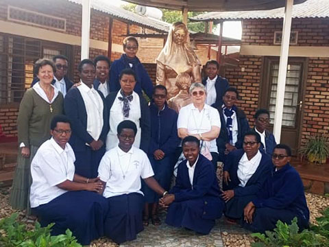 Eucaristía solemne en la parroquia, con los votos de dos hermanas ruandesas, Florence y Christine. Con gran participación de vecinos del pueblo y aledaños, contando con las hermanas formadoras de la Congregación, Equipo General y un grupo de Castejón (Navarra) y otro de Monesterio (Badajoz) .