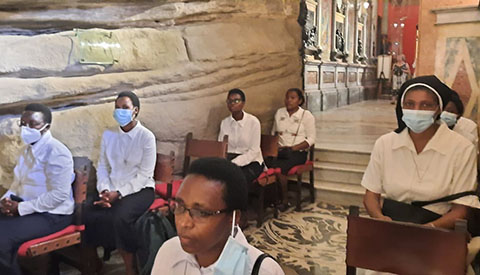 El grupo de junioras que estamos en formación para hacer los votos perpetuos, en el día de ayer fuimos a visitar la cueva Ignaciana de Manresa duramos un rato y de allí fuimos a visitar los padres de Ruanda que conocen las ruandesas.