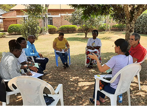 El trabajo se ha organizado en grupos, en los que las hermanas ruandesas que ya saben el español han sido las que han ido traduciendo para entender todo lo que se iba diciendo.