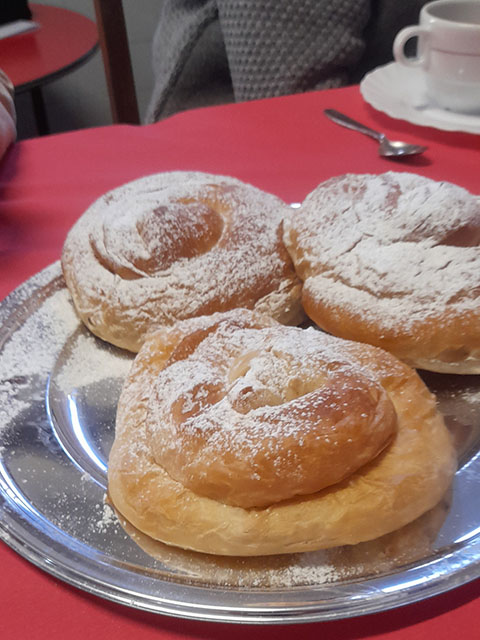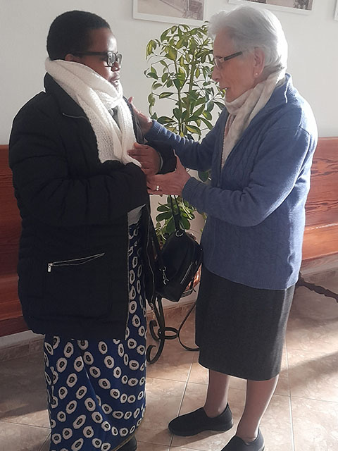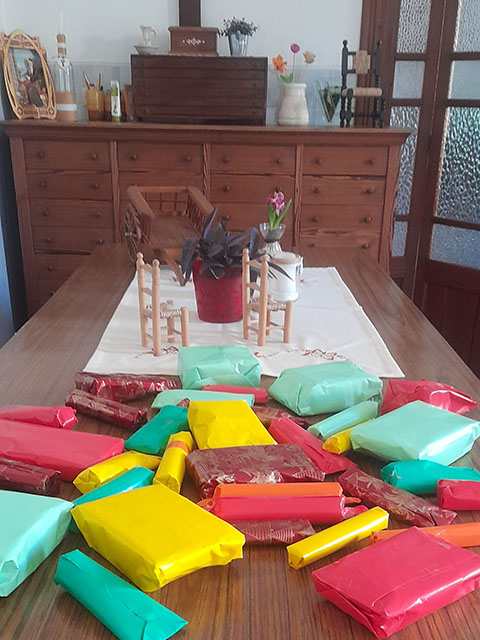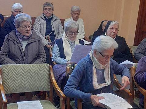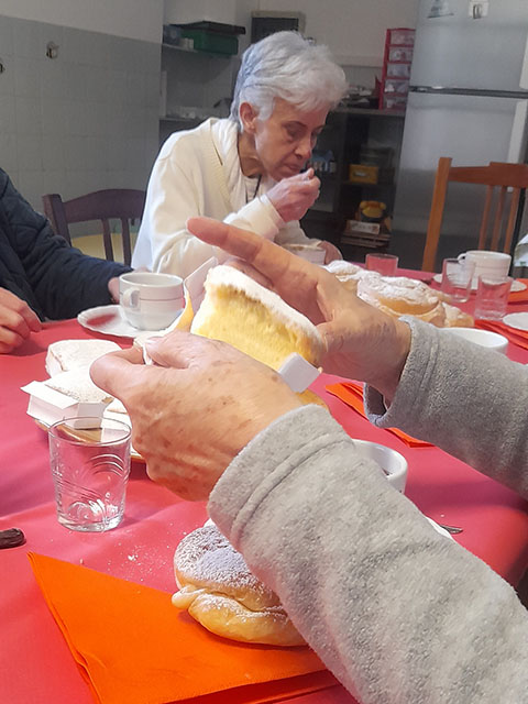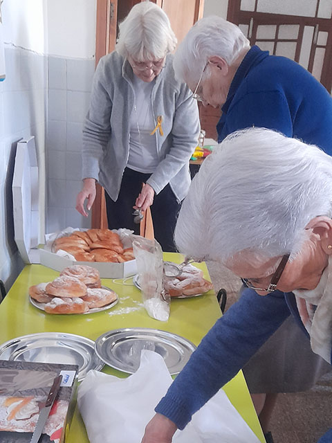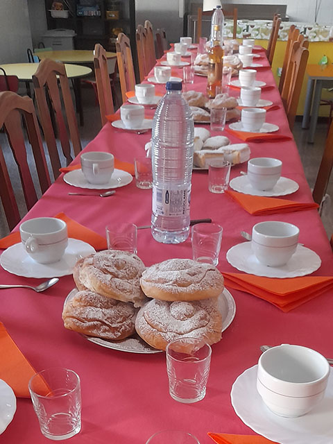 De todas las comunidades, menos de Santa Lucia, vienen hermanas a Llucmajor, en la capilla hacemos la celebración y luego pasamos al comedor para comer el chocolate con ensaimadas, cuartos, y un ambiente festivo y de encuentro.