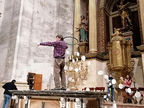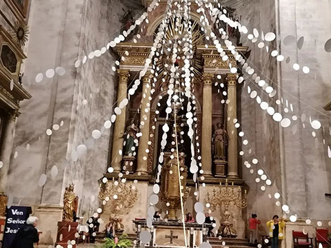 Un grupo de voluntarios de la parroquia de LLucmajor, cada año se ofrecen para hacer la adornación de lo que se dice “poner neules” es una tradición mallorquina en toda la isla y también en las otras islas, las hermanas participamos con nuestra colaboración.