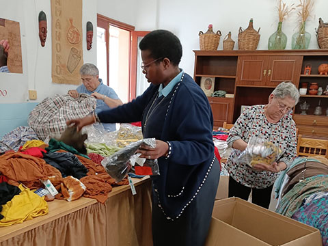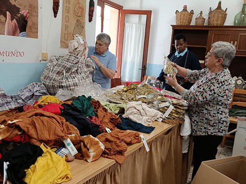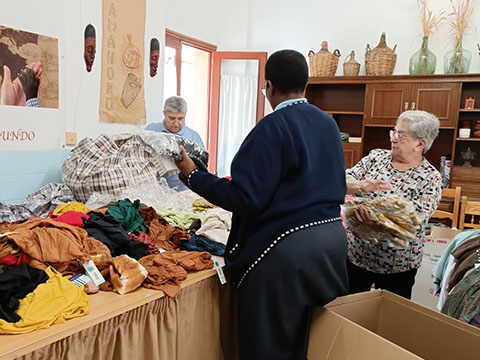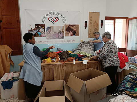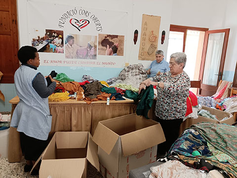 Algunas misioneras laicas y hermanas preparamos una gran cantidad de ropa nueva, regalada por un almacén, para hacer el próximo mercadillo en Pollensa e Inca que tendrá lugar a lo largo del mes de mayo.