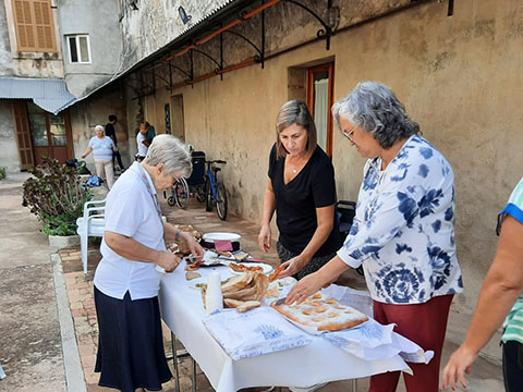 Las Misioneras de los Sagrados Corazones de Pollensa han recibido un grupo de usuarios de AFAMA y les han obsequiado con una merienda.