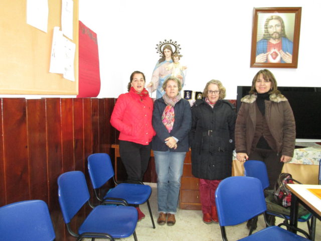 El pueblo está situado en las estribaciones de Sierra Morena. Habitado por unas gentes maravillosas y acogedoras. Importante por el jamón ibérico. El trabajo que realizan las hermanas de la Comunidad de misioneras de los Sagrados Corazones es totalmente pastoral parroquial. Trabajamos en la Pastoral de la salud, visitando enfermos e impedidos. Los visitamos, les llevamos la Comunión . Lo mismo hacemos en la Residencia de ancianos . Llevarles consuelo, amor y ayuda. Catequesis a todos los niveles. Preparación de catequistas. Grupos de Evangelio Ayuda a la Parroquia en todo lo que nos necesita. Nos sentimos realizadas y felices porque nuestra labor corresponde al Carisma de nuestra Fundadora: Contemplar, vivir y proclamar el amor del Padre manifestado en Los Corazones de Jesús y de María Procuramos ser el brazo derecho del Párroco.