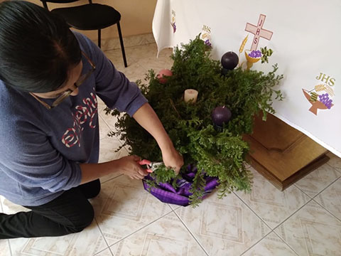 La comunidad de Querétaro prepara la corona de adviento