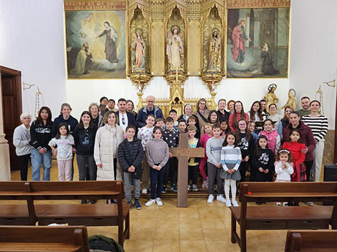 El Viernes Santo los niños de catequesis junto con el rector, hermanas y padres, hacen el viacrucis por el jardín de la comunidad de Campos.